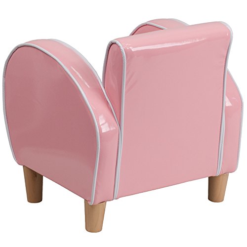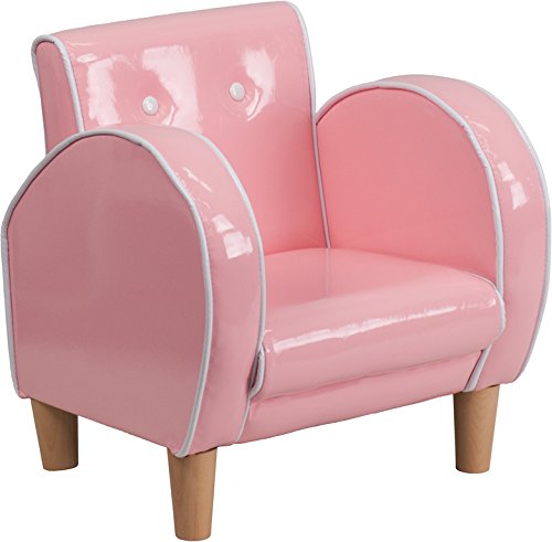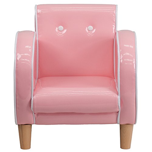 - Feature : Kids Lounge Seating / Button Tufted Back / Curved Arms / Portable Design / Pink Vinyl Upholstery