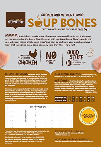 -. Title : Rachael Ray Nutrish Soup Bones Dog Treats, Real Chicken & Veggies Flavor, 3 Bones, 6.3 oz