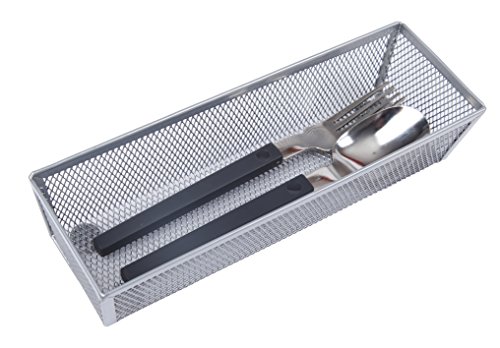 Powder-coated steel mesh bins can organize kitchen utensils and gadgets, stationery, craft supplies, keys, batteries, small tools, mail, stamps and more