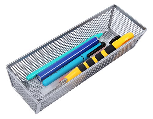 Finnhomy Mesh Drawer Organizer and Shelf Storage Bins School Supply Holder Office Desktop Cabinet Sliver 3" x 9"