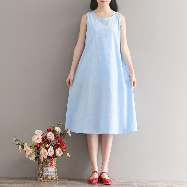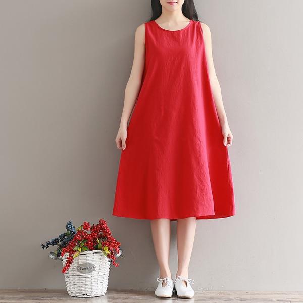 レトロなカラーリングのノースリーブロングワンピース。