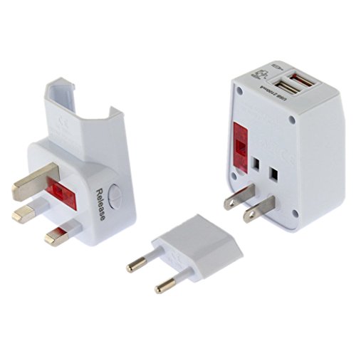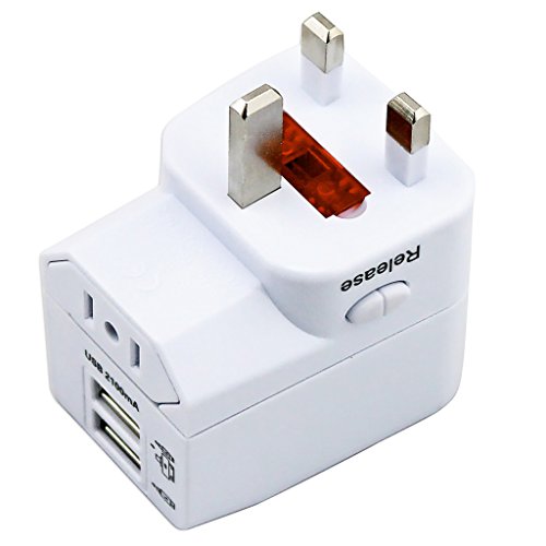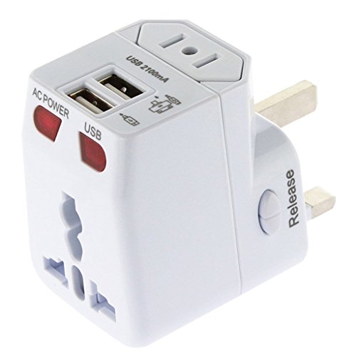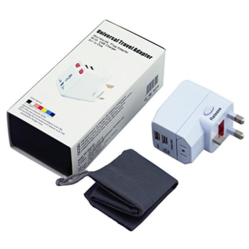 Kastar Safety Universal World-Wide Travel Adapter 2.1A with Dual USB Charger All-in-one AC Power Plug For AUS USA EU UK
