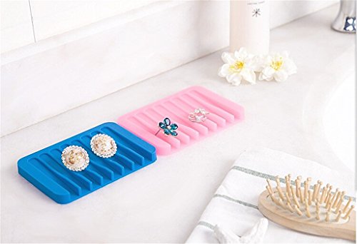 -. Feature : Silicone Soap Holder Material: Silicone Size: 11.5*8*1cm (4.5*3.15*0.4 inch) / Made of silicone, anti-skidding . / The stripes design let the tray easy to drain. Perfect for protecting your soap from water / Suitable for using in bathing or kitchen / Flexible material make it easy to carry in your travling of life