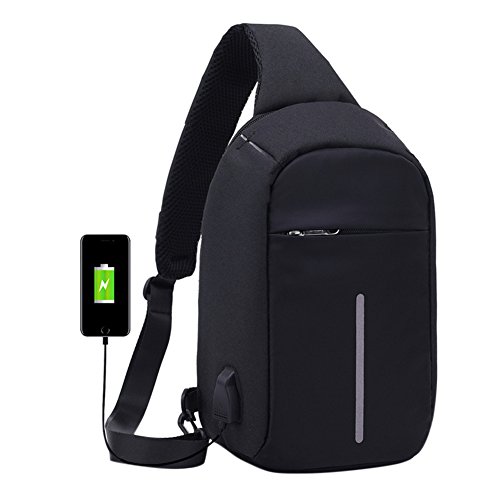-. Title : Casual USB Design Anti Theft Sling Bag Shoulder Chest Lightweight Cross Body Backpack for Men and Women