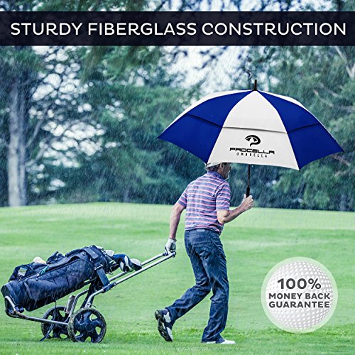- Title : Procella Golf Umbrella 62-inch Large Double Canopy Windproof Auto Open FREE Videos (Royal Blue & White)