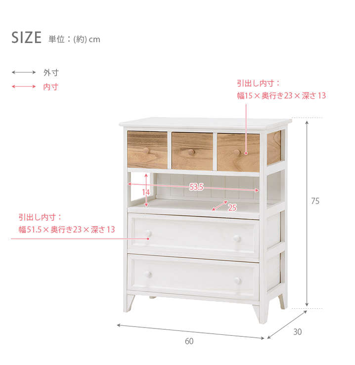●引出内寸(大):約幅51.5×奥行23×深さ13cm