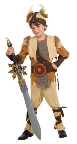 -. Binding : Toy -. Brand : Rubie's -. ClothingSize : Large 12-14,Medium 8-10,Small 4-6 -. Color : Beige -. Department : unisex-child -. Feature : Viking Warrior tunic, vest sash and belt. / Includes armbands, leg ties, and helmet. / Sword sold separately, wear your own pants and shoes. / Deluxe costume is available in children's sizes small, medium, and large. / Rubie's brings fun to dress-up with costumes and accessories kids play with all year long. -. Label : Rubies - Domestic -. Manufacturer : Rubies - Domestic -. MPN : LYSB004VR7K38-TOYS -. PackageQuantity : 1 -. PartNumber : LYSB004VR7K38-TOYS -. ProductGroup : Toy -. ProductTypeName : CHILDRENS_COSTUME -. Publisher : Rubies - Domestic -. Size : Small -. Studio : Rubies - Domestic -. Title : Rubie's Deluxe Viking Warrior Costume -. Warranty : Guaranteed against manufacturer defects