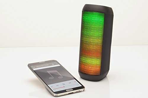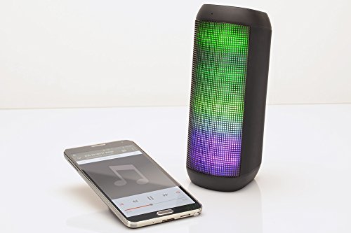 -. Feature : Brillianter Klang und faszinierende LED Licht-Show - Deine mobile Party / 5 programierte LED-Lichtthemen leuchten im Takt der Musik, vertikal sowie horizontal (Club und Equalize Thema) / Streame Deine Lieblingsmusik völlig drahtlos von jedem Bluetooth-fähigen Gerät aus / 5 voreingestellte LED-Lichtthemen um Deine Lieblingsmusik zu visualisieren (Club, Equalize, Groove, Rainbow, Meteor)