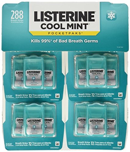 Listerine Pocket Paks Oral Care Breath Strips (Cool Mint), Kills Germs for Fresh Breath - 12 Pa...