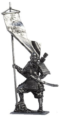 -. Title : Japanese warrior-monk with the flag Tin Toy Soldiers Metal Sculpture Miniature Figure Collection 54mm (scale 1/32) (M183)