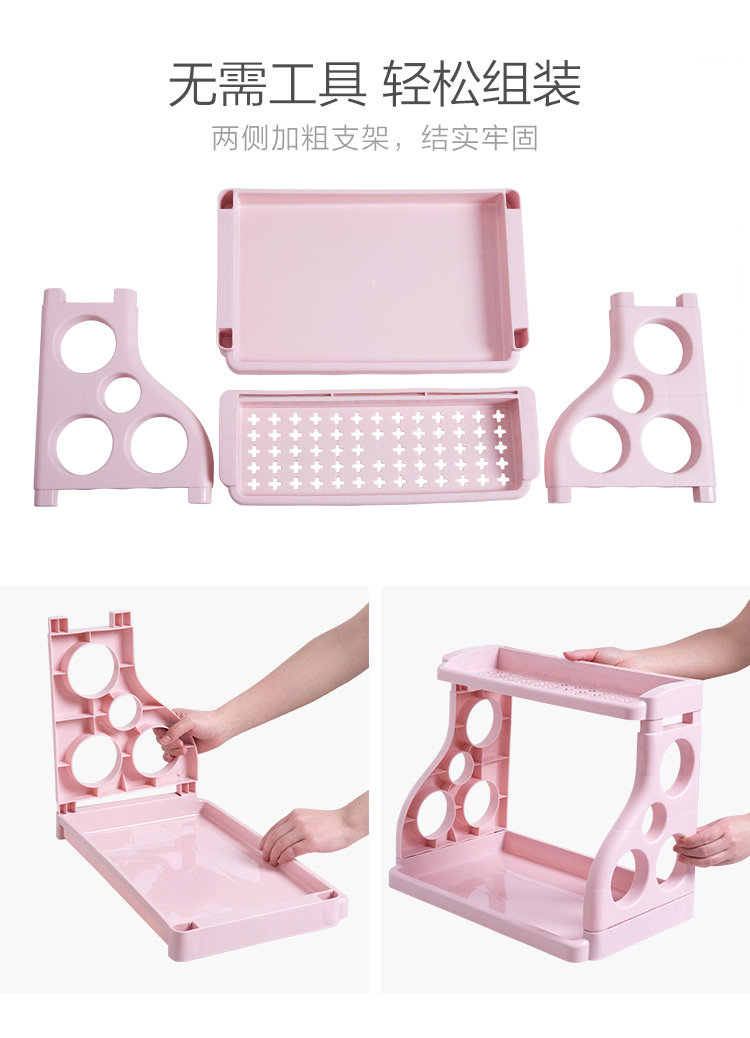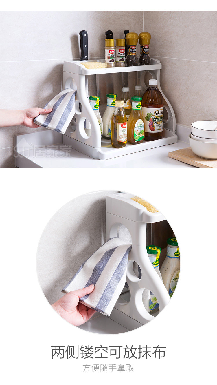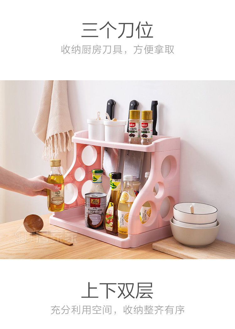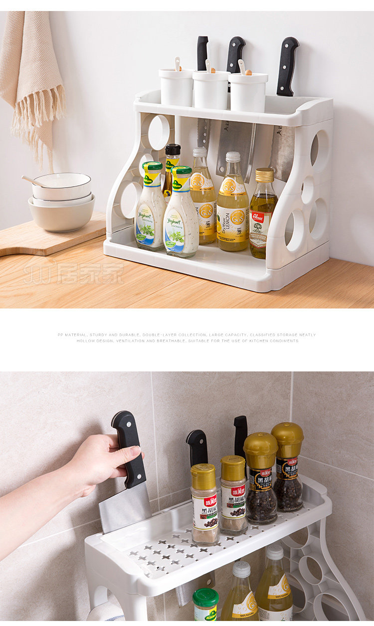 Summary: PP material, strong and durable, double storage, large capacity, classified storage neatly arranged, hollow design, ventilation, suitable for storage of kitchen condiments