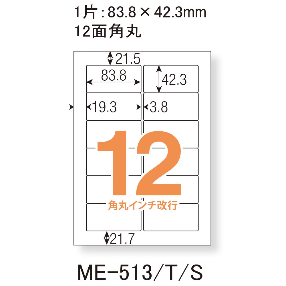 FSC認証紙を採用。「適切に管理された森林」に由来する製品であると保証された「環境配慮型の商品」。 宛名・住所・商品・ロゴ・タイトル・収納内容・値札表示などに 規格:A4 角丸12面四方余白 一片:83.8×42.3mm 汎用インチピッチ 数量:100シート入(12×100=1200片入) 紙厚:総厚:124µm(0.124mm)、ラベル厚:71µm(0.071mm)、ラベル坪量:70g/㎡