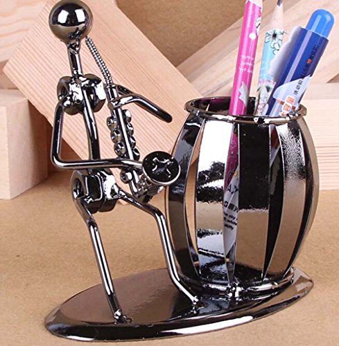 Merits Creative Office Desktop Accessories Instrument Player Metal Pen/Pencil Holder Collection Craft Art Statue Model Sculpture Room Decorations (Saxophone)