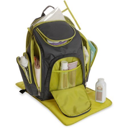 Studio : MegaMarketing Publisher : MegaMarketing Binding : Baby Product Product Description Baby Boom Spaces and Places Back Pack Diaper Bag unzips to a large interior compartment, perfect for carrying diapers, clothing, toys, foods and more. The diaper bag has 11 separate pockets for storing smaller essentials, like pacifiers, bottles or your wallet. The ag's side pocket keeps the hard wipes case (included) in easy reach. Bottles store easily and safely in the exterior, insulated pocket, or interior pouches. The bag comes with a removable changing pad and accessory pouch for dirty duds. 0