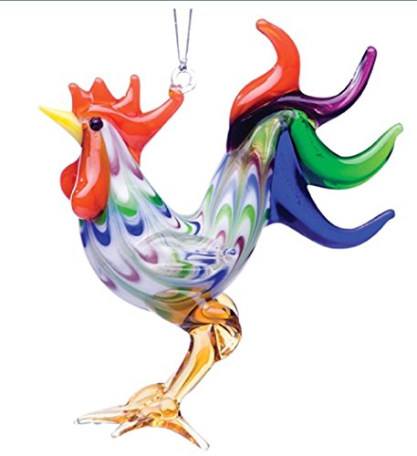 Hand Crafted Glass Christmas Tree Ornament or Figurine, Rooster