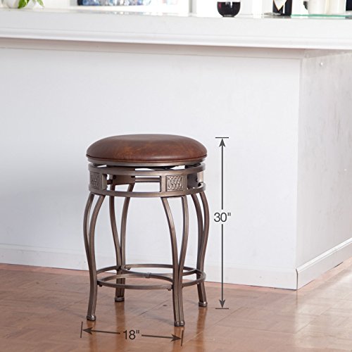 -. Title : Hillsdale Montello Backless Swivel Counter Stool, Old Steel Finish with Brown Faux-Leather