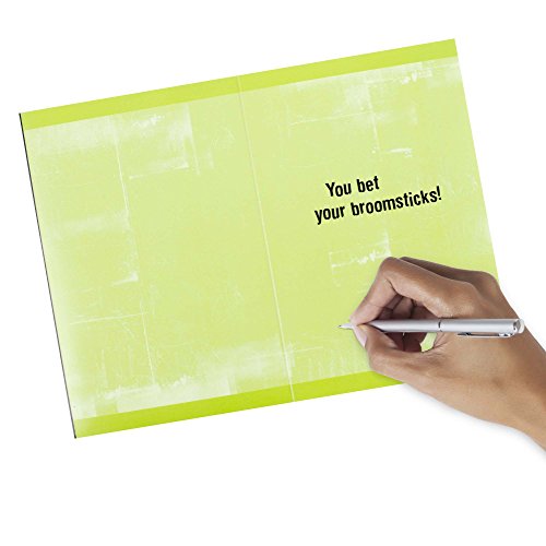 ReleaseDate : 2017-09-18 Studio : Hallmark Marketing Company, LLC (Office) Publisher : Hallmark Marketing Company, LLC (Office) Binding : Office Product Product Description Give a funny Halloween card for kids, friends or family. Press the button to make the witch talk and her cauldron to bubble with sound effects. Includes 1 Halloween Sound Greeting Card and 1 Envelope. Card Size: 5.75 inches wide by 8.3 inches long. The front of the card reads "Do I witch you a happy Halloween?". Open the card to reveal the message "You bet your broomsticks!". Hallmark greeting cards are made with paper from well-managed forests. Hallmark was founded in 1910 when 18-year-old J.C. Hall arrived in Kansas City, Missouri, with a couple of shoeboxes of postcards under his arm and the American dream in his heart. Hallmark greeting cards are sold online and in nearly 40,000 retail stores across the globe and people continue to recognize the iconic Hallmark brand as "the very best." 0