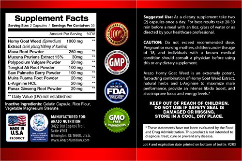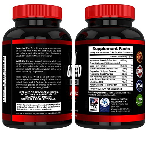 -. Title : PREMIUM Horny Goat Weed Extract with Maca Root, Ginseng, Muira Puama and L-Arginine - For Men and Women - 100% Pure Herbal Nutritional Supplement - Arazo USA