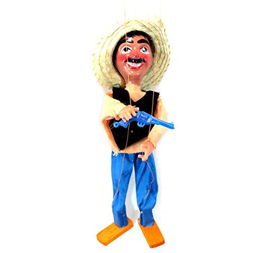 String puppet or marionette. Very traditional hand made Mexican toy. The puppet is 14"H and 30" when the strings are extended. Makes a great gift! Minor variation can occur; ships in assorted colors.