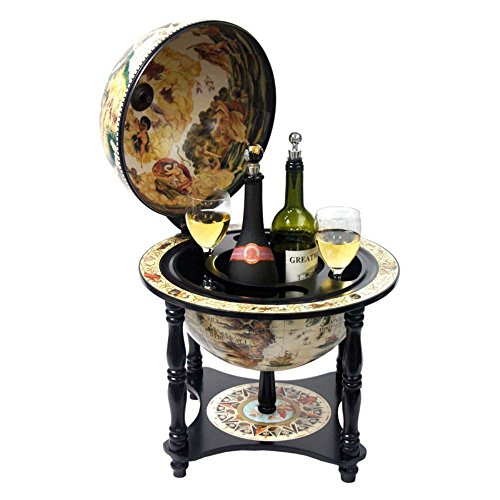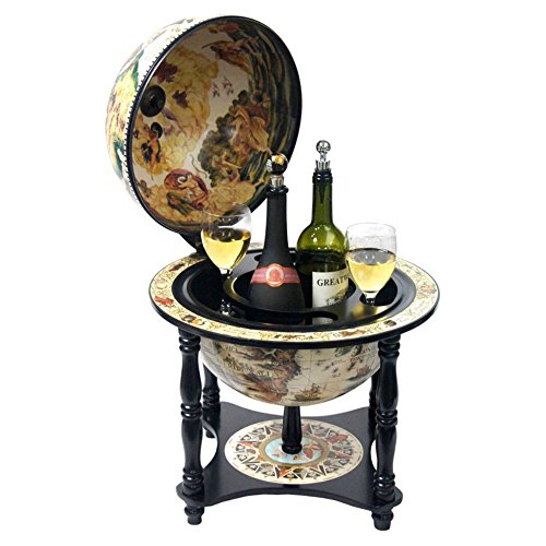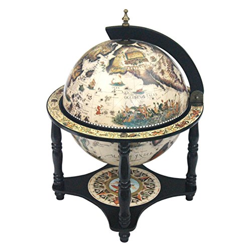 Product Description Open from its hinged meridian to reveal antique replica fresco inside. Wrapped with majestic replica 16th century nautical maps and integrated wooden stand. Rotates on its North and South axis. Contents not included. 0