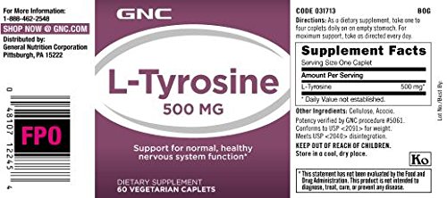 GNC LTyrosine 500 MG 60 Vegetarian Caplets