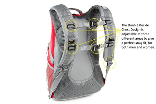 -. Feature : EXTREMELY COMFORTABLE: This hydration backpack is created with our signature design, two buckles attached to the shoulder strap, one across the chest and one across the stomach releasing pressure off the shoulders and back. Additionally has a thick mesh padding and back support system formed to your back to give you the most comfortable hike possible.. / PERFECT FIT: Adjustable straps to fit perfectly for both men and women: Shoulder straps can tighten and loosen, Buckle straps can tighten and loosen, as well as move up and down. / DAY-HIKE+ VOLUME: 30l hydration backpack has two large compartments and one small compartment. Two side mesh pockets for easy visibility and easy access. / BREATHABLE: Hydration pack is made with thick mesh shoulder and back padding to allow your body to breathe and be comfortable at the same time. / GUARANTEED and DURABLE: We are so confident of the quality of our hiking pack that we offer a 2 Year limited warranty!
