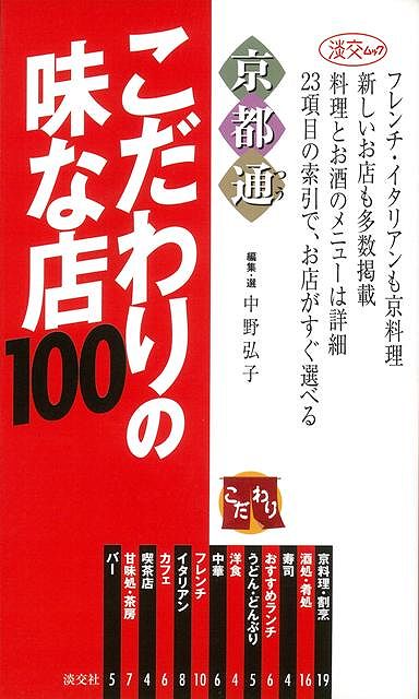 【商品基本情報】 商品名称:京都通 こだわりの味な店100 著者/出版社:中野 弘子/中野 弘子 初版発行日:2005/10/11 サイズ:A5変判 ページ数:231 ISBN/JAN:447302105X/4528189250826
