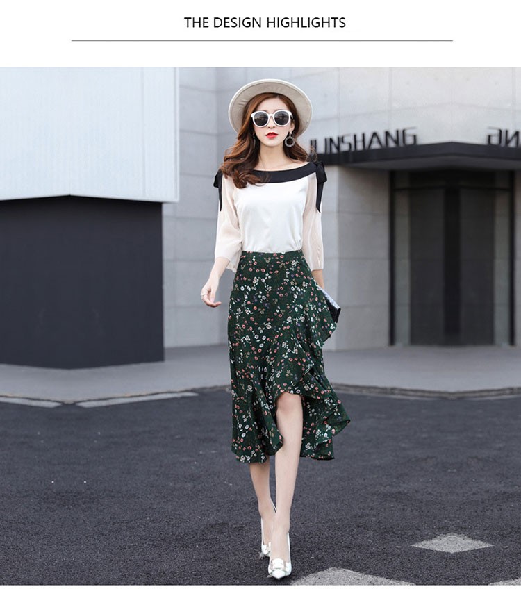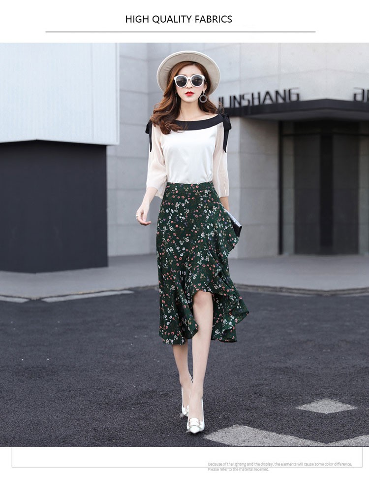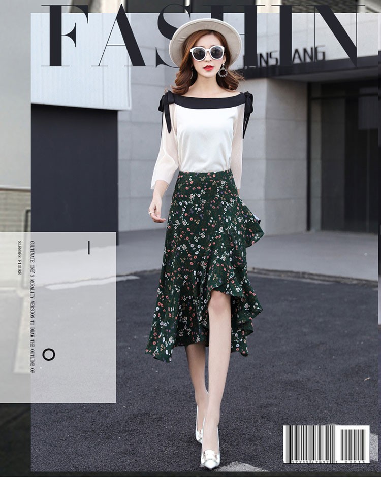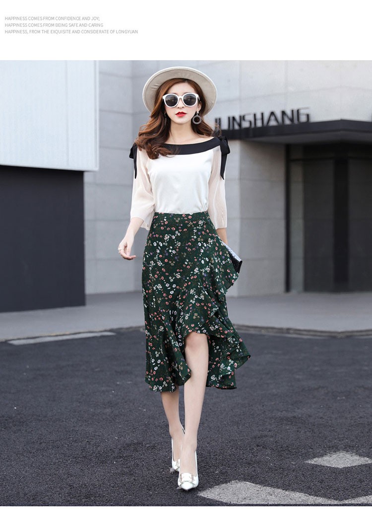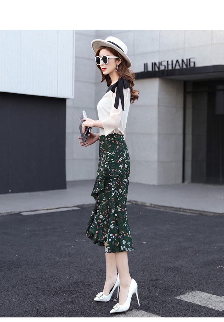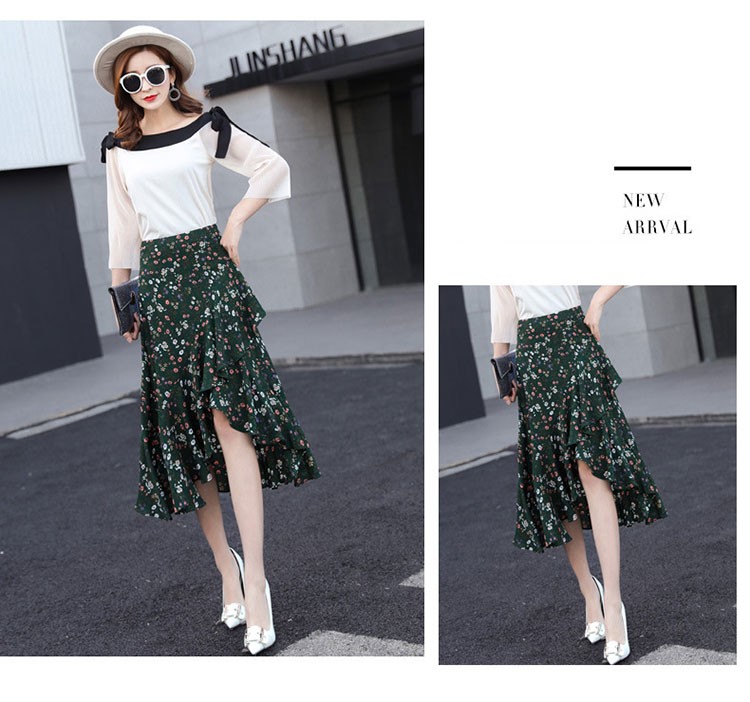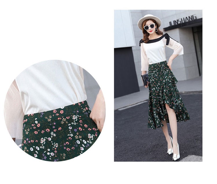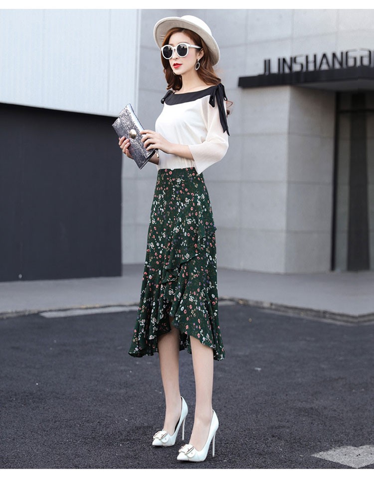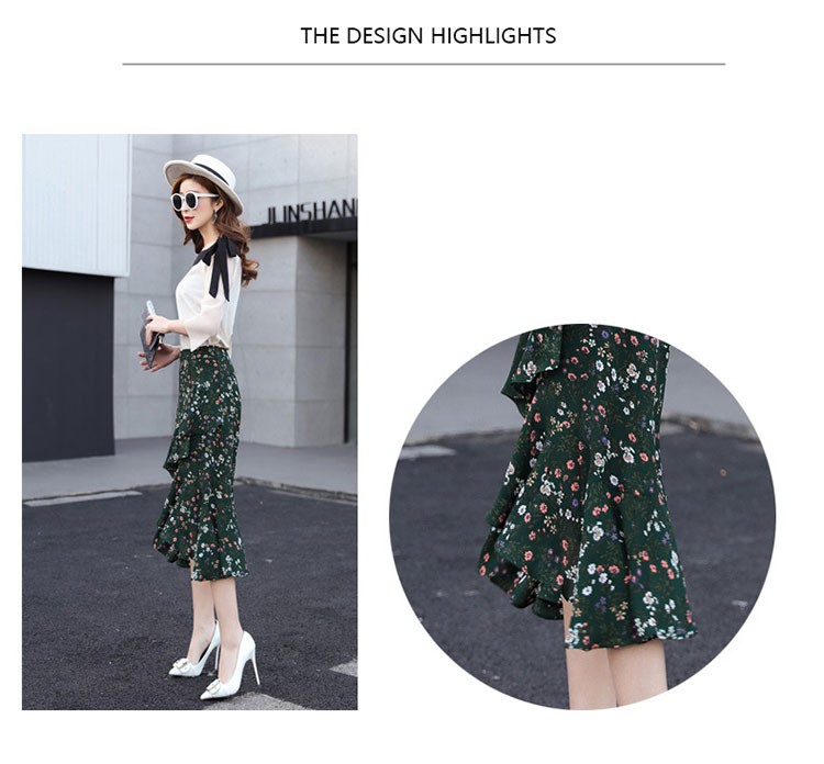 【製品仕様】■商品名レディース シフォン素材 花柄 Aライン フレアスカート■商品説明フェミニンかつ上品な一枚。後ろが長いフィッシュテールで足を美しく優雅に見せてくれます。動きのある軽やかなシルエットで、女性らしい華奢な腰回りを演出してくれます。■サイズ/寸法S M L 2L 3L■素材/材質ポリエステル95% ポリウレタン5%■色/カラーグリーン【検索キーワード】スカート 膝丈 レディース 夏 花柄 フレアスカート Aライン フリル ミディアム ミモレ丈 ボトムス S M L 2L 3L 大きいサイズ おしゃれ 可愛い 30代 40代 ロング ミディアムスカート オフィス 通勤 きれいめ