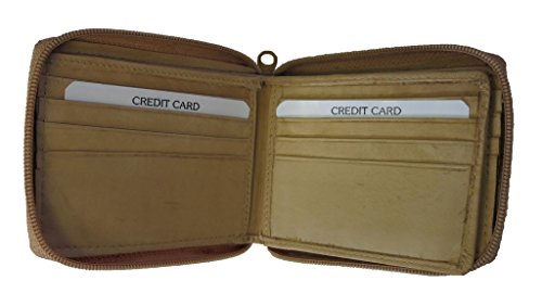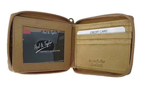 Paul & Taylor Mens Leather Zip Around Bifold ID Wallet, Tan