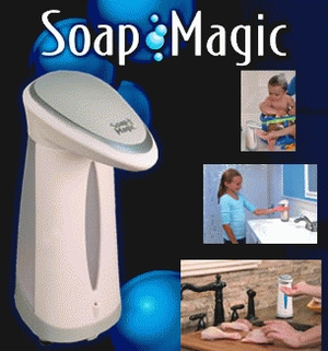 Magic Soap Dispenser memiliki keunggulan desain hands free, yaitu dengan tanpa menyentuhnya, alat akan mengeluarkan sabun saat tangan anda ulurkan di bawah kepala dispenser. Sensor inframerah akan mendeteksi tangan anda dan secara otomatis mengeluarkan sabun yang anda butuhkan dalam beberapa detik. Selanjutnya alat akan mati sendiri juga dengan tanpa anda menyentuhnya.
