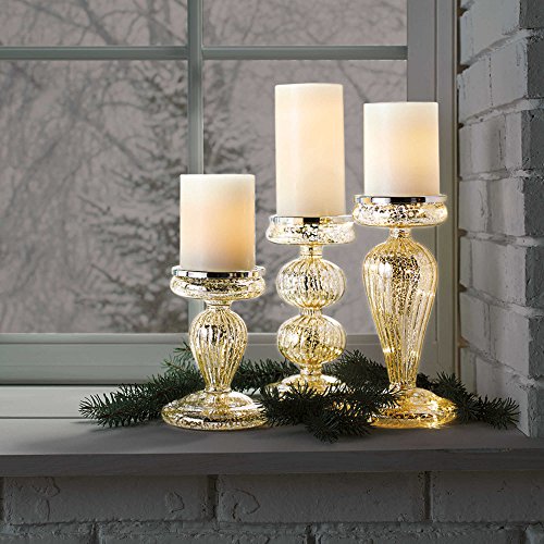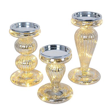 3-Piece LED Pillar Candleholders Set with Built-In Micro Lights