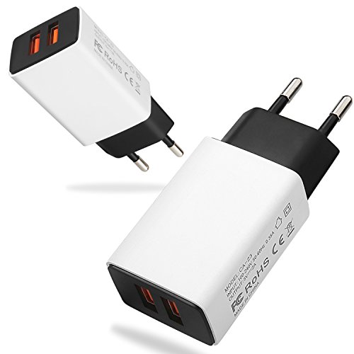 -. Feature : ★ Security charge: PC fireproof material ( V-0 Grade ), ★★ Powerful protection: output short circuit, built in over-current, over-voltage, over-heat★★. The USB Wall Charger is subjected to rigorous internal testing and multiple safety monitoring. When the battery is full, it automatically stops charging. Bring you safer living space without worrying that it will burn out. / ★ Performance Parameter: Input: AC100-240V, Output: DC 5V/2A (10W), EU Standard. Wide voltage range matches different safe voltage standards. Dual usb port is convenient for you to use two devices to charge, to relieve your nervous life. / ★ Humanized intelligent design: Light and easy to carry, It is very suitable for use in travel, home, office, training hall, hotel, etc. Smart dual port IC automatically recognizes and assigns the most effective current to your cell phone and tablets, with current and anti-shock protection. / ★ Partial list of applicable: perfect fit for most Mobile Phone, Tablets, Game Devices, GPS Devices, Digital cameras, and other USB supported devices, Such as iPhone 7 Plus 6 Plus 6S, 6, SE, 5S, 5, 4S. 4; iPad Pro Air 2 Mini 2 3 4 5; iPod touch; Samsung Galaxy S8 S7 Edge S6 Edge S5 S4 S3, Note5/4/3, Galaxy Tab, Google, Nexus, HTC, LG, BLU, Nokia, Sony, Blackberry, Motorola, Microsoft, ZTE, OnePlus, Huawei, PSP, Xbox, E-book Readers, Bluetooth speaker, GoPro, MP3/MP4 Players, and More. / ★ What you get: 2 Pcs EU Travel Wall Charger, Within 30 days money back, 12 months warranty and friendly customer service.