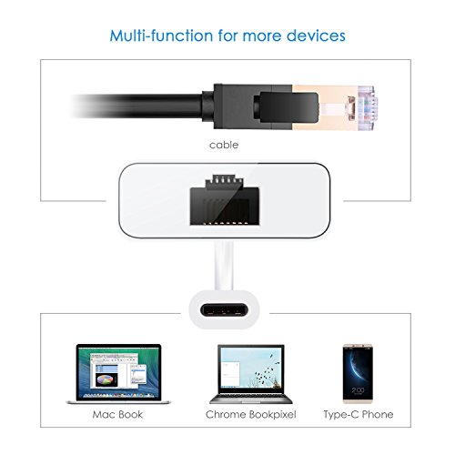 BC Master USB Type-C to Gigabit Ethernet RJ45 Adapter Supporting 10/100/1000 bit Ethernet for New Macbook, Chromebook Pixel, Microsoft Lumia 950 / 950XL and Other USB-C Enabled Devices