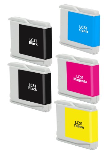 Virtual Outlet 5 Pack Compatible Inkjet Cartridges for Brother LC-51 LC51 LC 51 LC-51XL, LC-51BK LC-51C LC-51M LC-51Y High Yield Compatible with Brother DCP-130C, DCP-330C, DCP-350C, DCP-750CW, FAX-1940CN, MFC-240C, MFC-440CN, MFC-5460CN, MFC-665CW, MFC-5