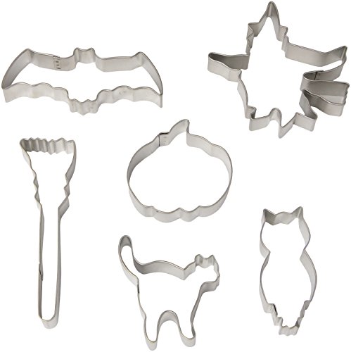 - Set of 6 cute cookie cutters full of nostalgia. Gift boxed with great vintage graphics the set includes flying witch 4.75", Pumpkin 3", Broom 5" long, Cat 3", Bat 4.5", and Owl 3.25"