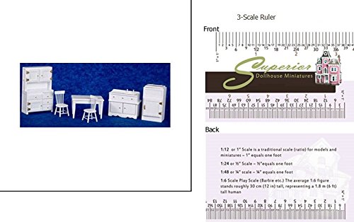 Modernize your dollhouse kitchen with thisáWhite Kitchen Set. áIncludes sink, hutch, table, 2 chairs, and icebox. Size: 6.125"H x 3.75"W x 1.75"D.