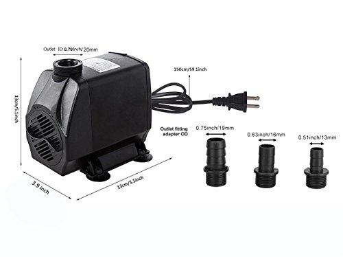 - HIGHER SPEED FLOW: KEDSUM Wave Maker Pump can flow up to 880GPH, Pump Outlet ID: 0.78-Inch (20mm), outlet fitting adapter OD: 0.75 inch (19mm), H-Max (Lift height): up to 10 feet, Power: 100W