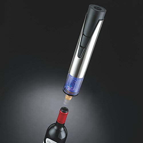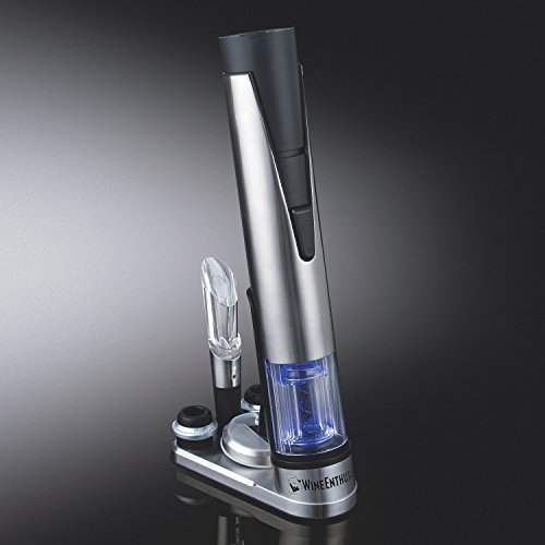 - Gift set comes with foil cutter, two stoppers and an aerating pourer on a rechargeable stand
