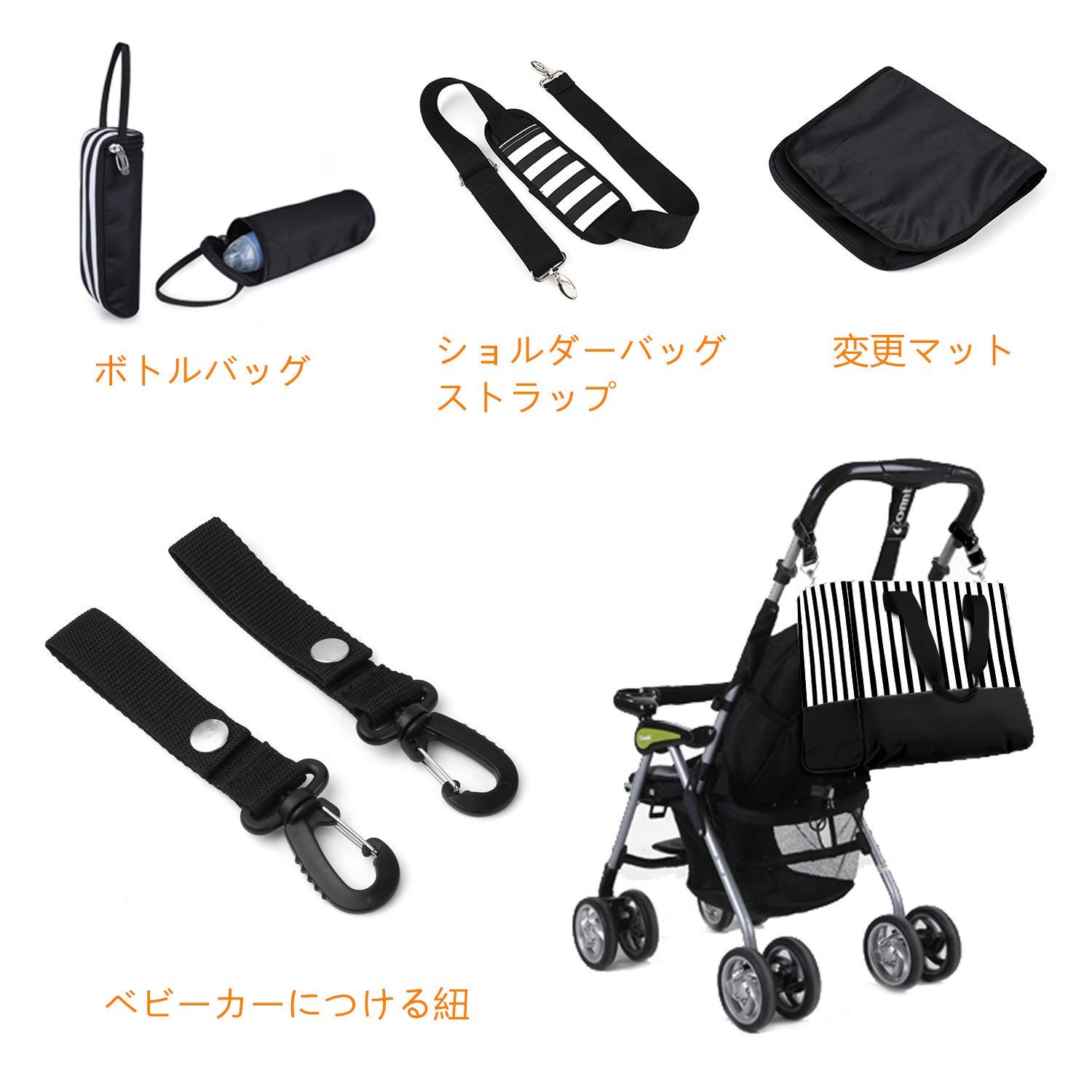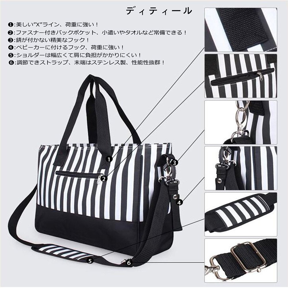 The diagonal hook and shoulder strap are the strongest mothers bags that can even hang the stroller.