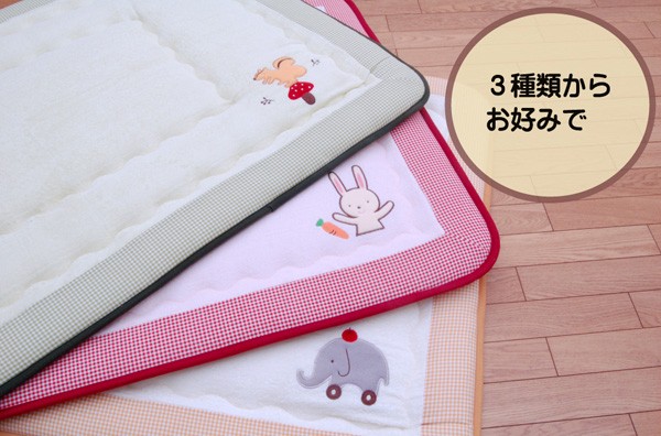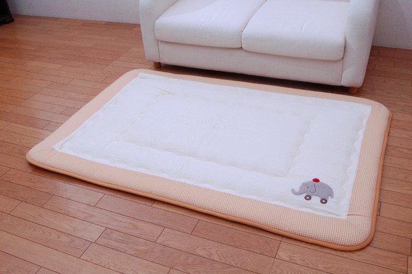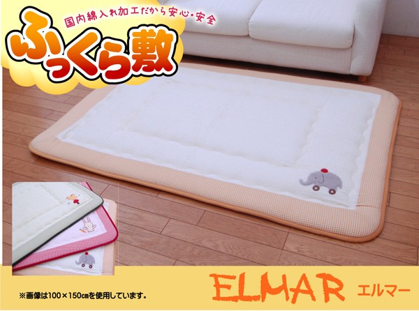 【商品名】国産(日本製)固綿40mm使用 タオル地 ふっくら敷 『エルマーF敷』 100×150cm(ゾウ刺繍入り)
