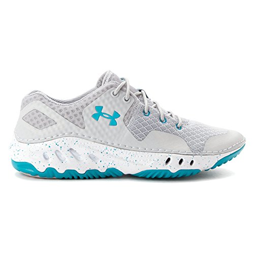 FEATURES of the Under Armour Women's UA Hydro Spin Shoe Textile Synthetic Rapid drainage contoured CMEVA footbed/ midsole Highly breathable, quick-dry textile upper Welded synthetic overlays for abrasion protection High traction compound, non-marking rubber outsole Traditional lacing system for adjustable fitFeature