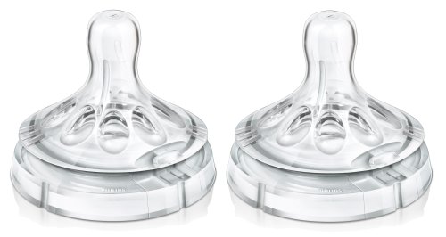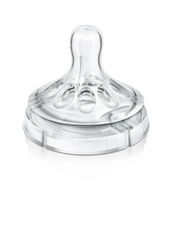 Philips AVENT SCF655/27 Natural Variable Flow Nipple is designed to make it easy to combine breast and bottle feeding. The wide, breast-shape and unique comfort petals make the nipple softer and more flexible to promote natural latch-on. The petals also reinforce the shape of the nipple to prevent it from collapsing in baby's mouth so your baby can feed contentedly and without interruption. The nipple's shape encourages the same tongue movements suckling babies use when breastfeeding, so transition between the two is less confusing for your baby. The Variable Flow Nipple is designed for babies at least 3 months old. Featuring a slot hole design, the Variable Flow Nipple allows you to change the flow of milk, provides an extra fast flow and accommodates thicker liquids. Simply turn the bottle to line up the I, II or III marking with your baby's nose to choose between slow, medium and fast flow. The Natural nipple features twin anti-colic valves that work to make feeding more comfortable for babies. During feeding, the valves release air back into the bottle rather than into your baby's tummy, which reduces colic and discomfort. These nipples are made of soft, durable silicone, which is odorless and flavorless. The nipples can be sterilized in any Philips AVENT steam sterilizer, boiled for five minutes, or washed in the dishwasher.