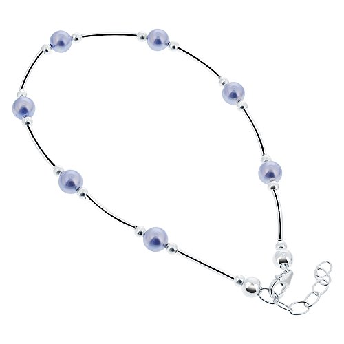 This fabulous anklet can be yours now. This gorgeous anklet is made with imitation pearls in light blue and sterling silver tube and bead accents. Featuring a lobster claw clasp, the length of this anklet is adjustable from 9 inch to 10 inch which makes it easy for you to find that perfect fit. The anklet will be shipped in a FREE gift box, perfect for surprising that special someone. This gorgeous anklet is made with glimmering blue, aqua, and lavender color genuine Swarovski crystals with 925 sterling silver tube and bead accents. This anklet is adjustable from 9 - 10 inches and features a lobster claw clasp making it easy and comfortable to fit. The anklet will be shipped in a gift box, perfect for surprising that special someone.
