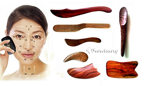 (Sanctuary)/Wellness Relaxation/Massage Tools Equipment/DIRECT FROM USA/Pack of 7 Wood Gua-Sha Guasa Guasha Scraping 100% Natural Massager Tool Smooth Edge High Qualit...