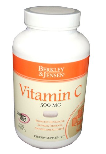 Studio : Berkley and Jensen Publisher : Berkley and Jensen Binding : Health and Beauty Product Description Berkley and Jensen Vitamin C 500 mg 500 Caplets Per Bottle. Enhances the immune system and promotes antioxidant activity. Gluten free. No artificial colors flavors, or preservatives. No yeast and no gluten. 0