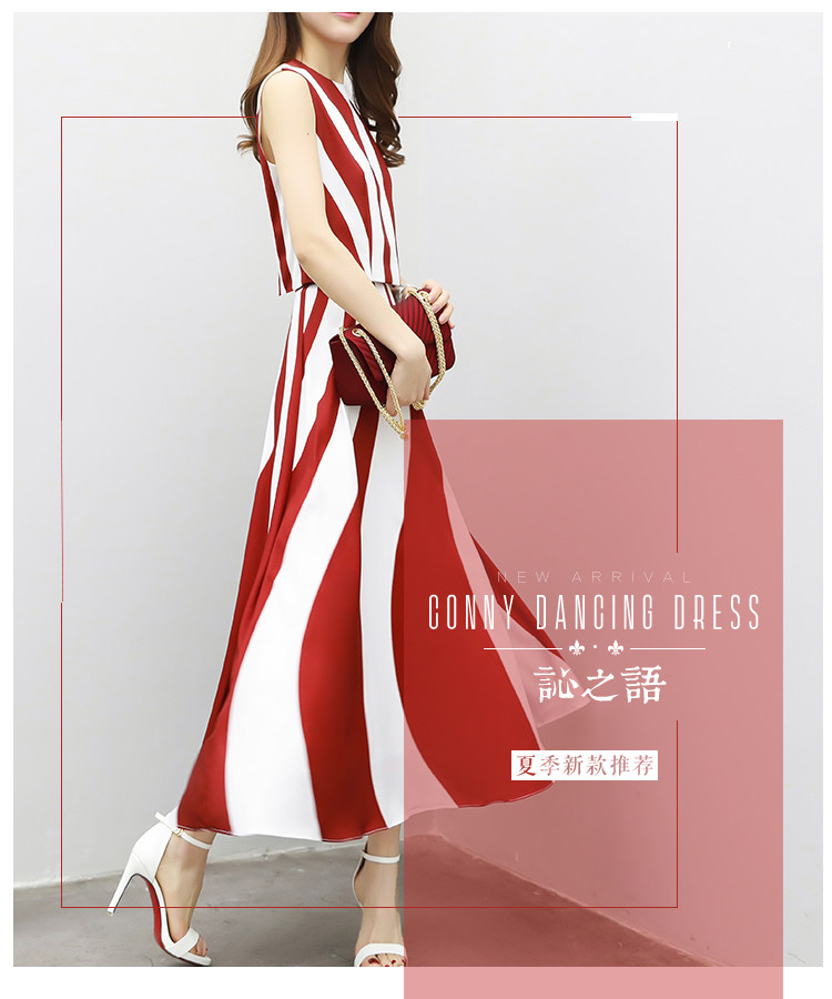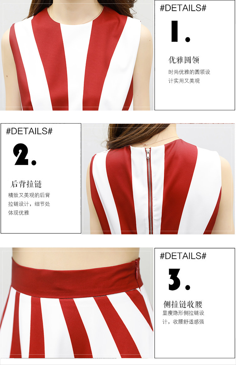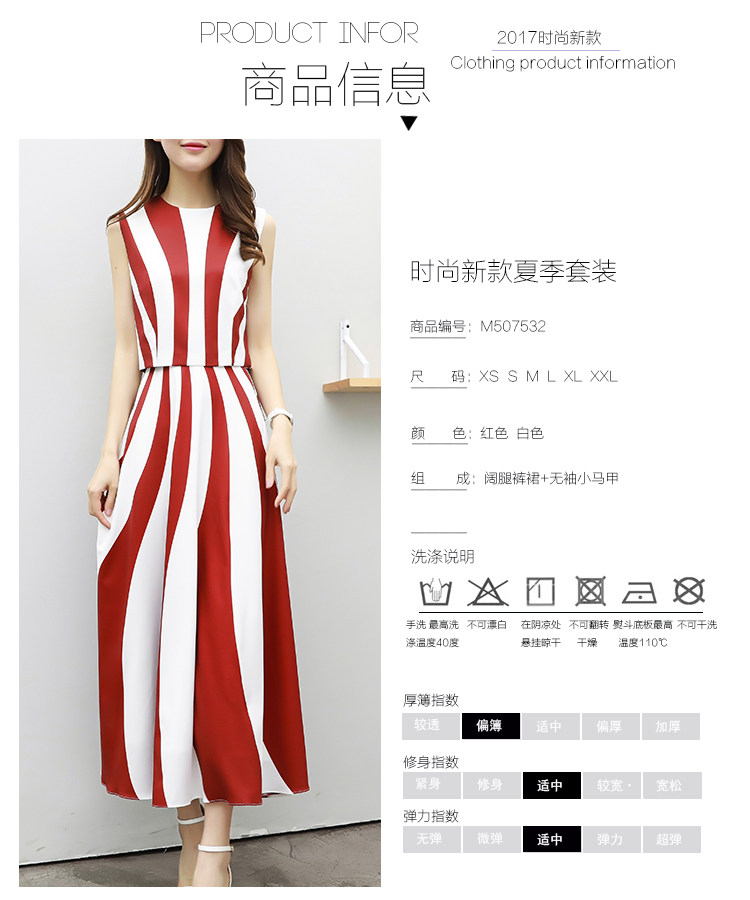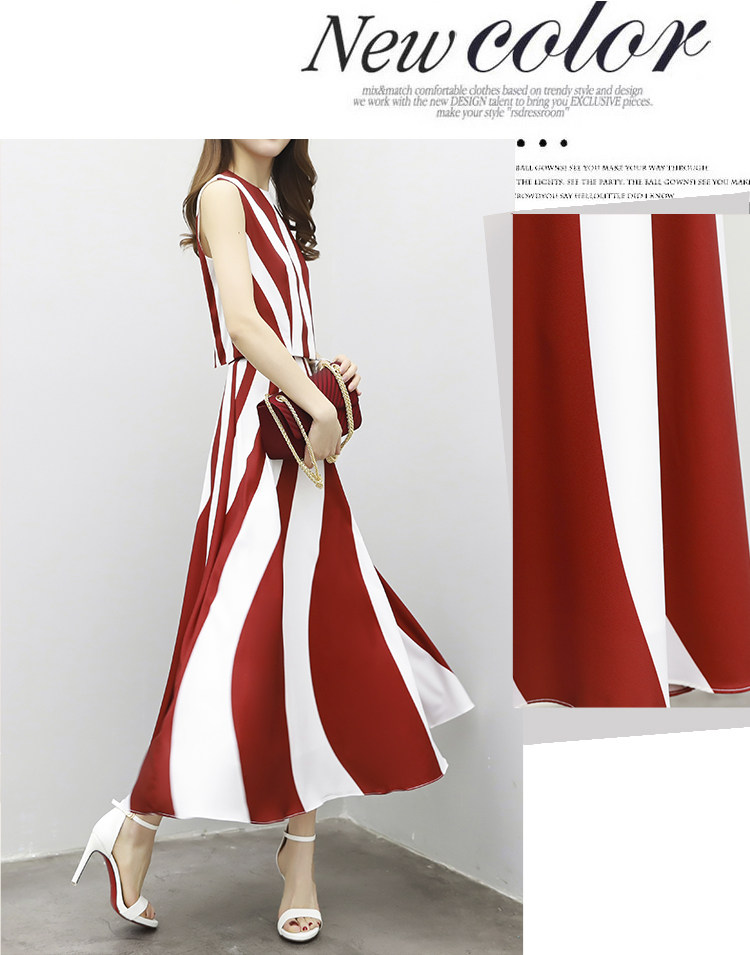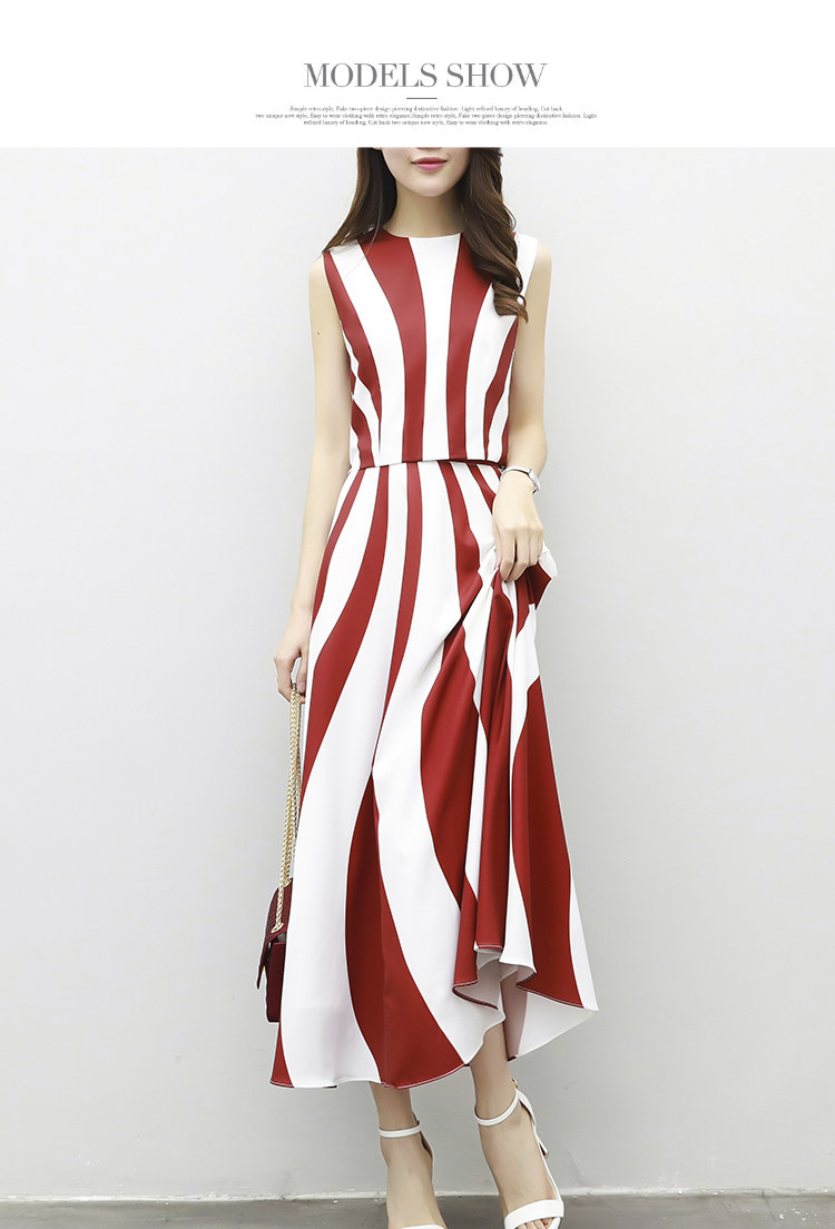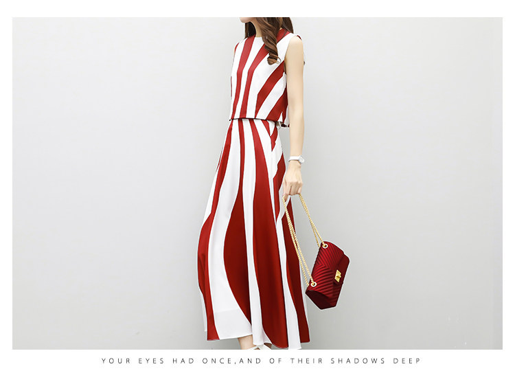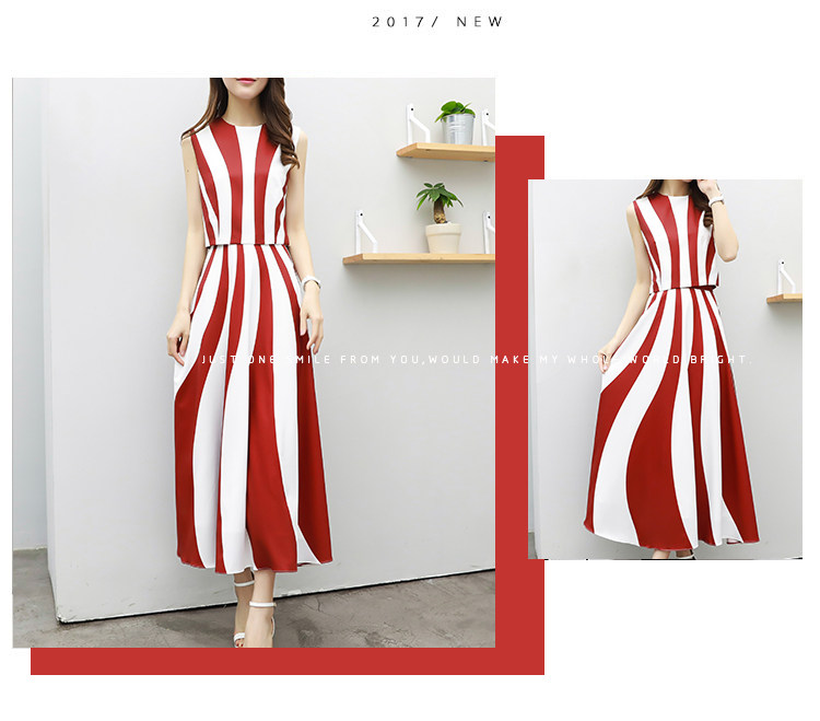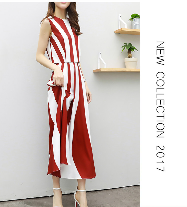 夏装2017新款女韩版修身连衣裙两件套装中长款无袖时尚条纹大摆裙