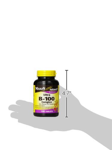 -. Binding : Health and Beauty -. Brand : Mason Vitamins -. EAN : 0783318847542 -. Feature : A combination of B vitamins which are essential to the body / Essential for keeping your brain, blood pressure and a numerous body functions in balance / Important group of metabolic functions in the human body / Required for blood formation, synthesis of proteins and fats / May reduce a woman's risk of having a child with brain or spinal cord birth defect -. IsAdultProduct : 0 -. Label : Mason Vitamins -. Manufacturer : Mason Vitamins -. MPN : 644100 -. NumberOfItems : 1 -. PackageQuantity : 1 -. PartNumber : 644100 -. ProductGroup : Health and Beauty -. ProductTypeName : HEALTH_PERSONAL_CARE -. Publisher : Mason Vitamins -. Studio : Mason Vitamins -. Title : Mason Vitamins Ultra B-100 Complex Tablets, 100-Count Bottle -. UPC : 311845064417