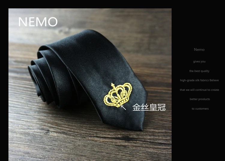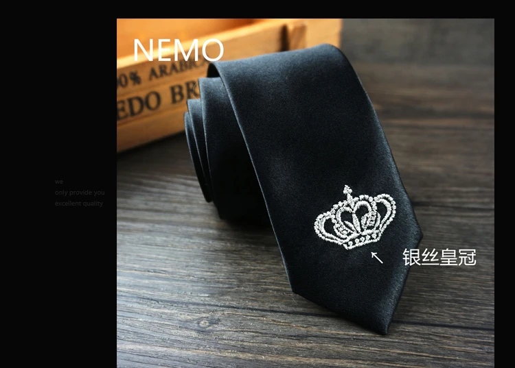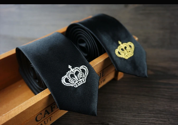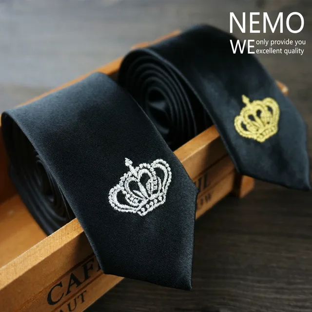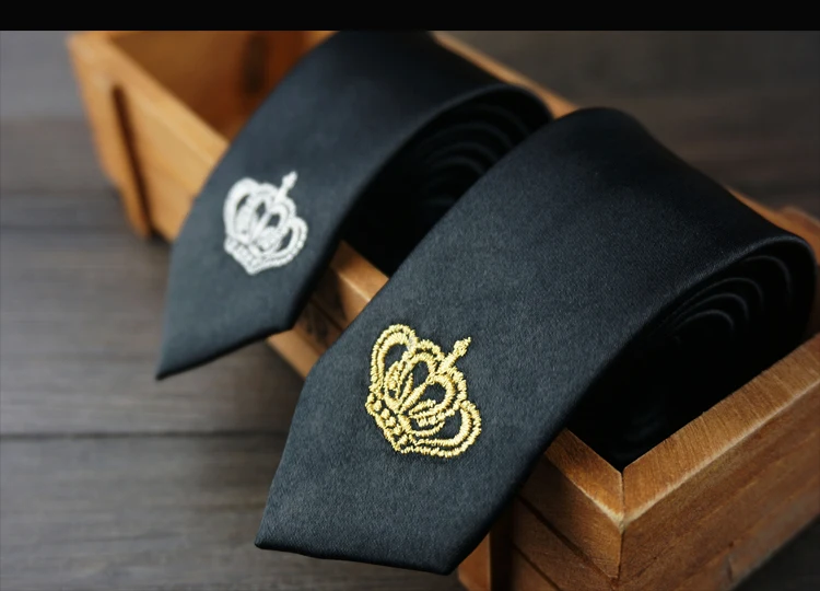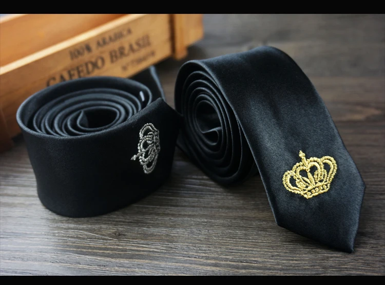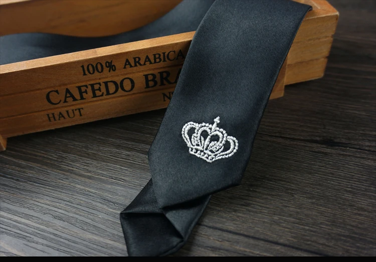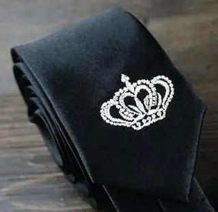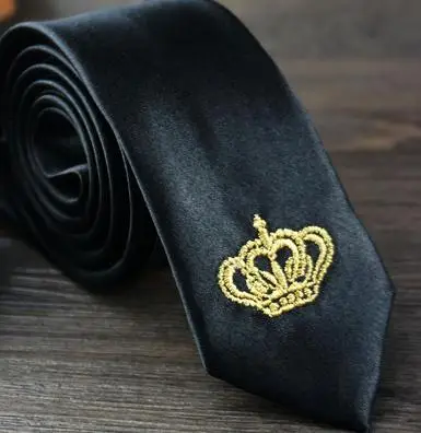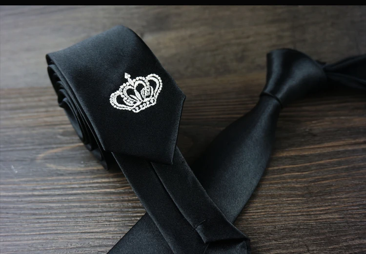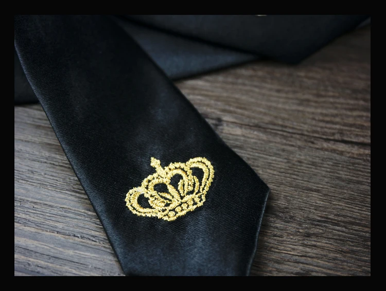 남성 럭셔리 자수 넥타이 크라운 수제 높은 품질의 넥타이 2016 새로운 Deisgner 패션 빈티지 블랙 슬림 넥타이
