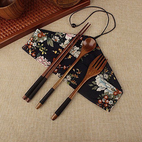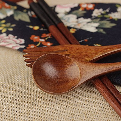 1. High quality material:made of natural wood. While buying random giving gifts. 2. Product size:chopsticks length-23cm,spoon size-19.5*4cm. fork size:17.5*3cm. 3. Package include:spoon,chopsticks, dinner fork and cloth tableware bag 4pcs set. 4. Warm tip:wash it before use. Easy to clean,healthy and safe to use it. 5. Perfect for lunch at school, work, picnic, or other fun outdoor activities.