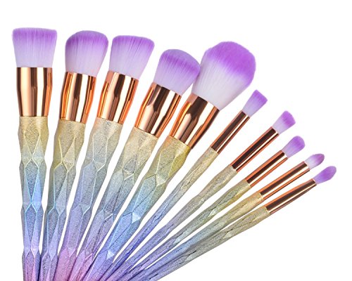 Green Beauty Mall 10Pcs Unicorn Rainbow Diamond Handle Makeup Brushes Set Foundation ond Handle Makeup Brushes Set Foundation (10 pcs Unicorn Brushes+ Pink Pouch)